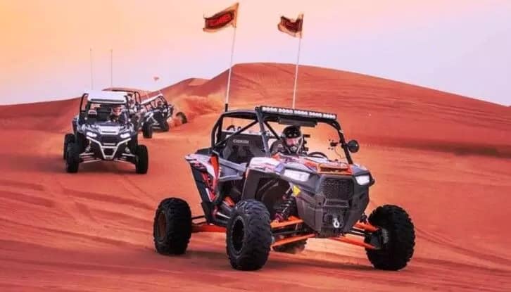 This adrenaline-packed adventure includes a 30-minute dune buggy ride, sandboarding, camel riding, henna painting, traditional costume experiences, Sheesha, and a BBQ buffet dinner with live entertainment like Tanoura and belly dance performances.